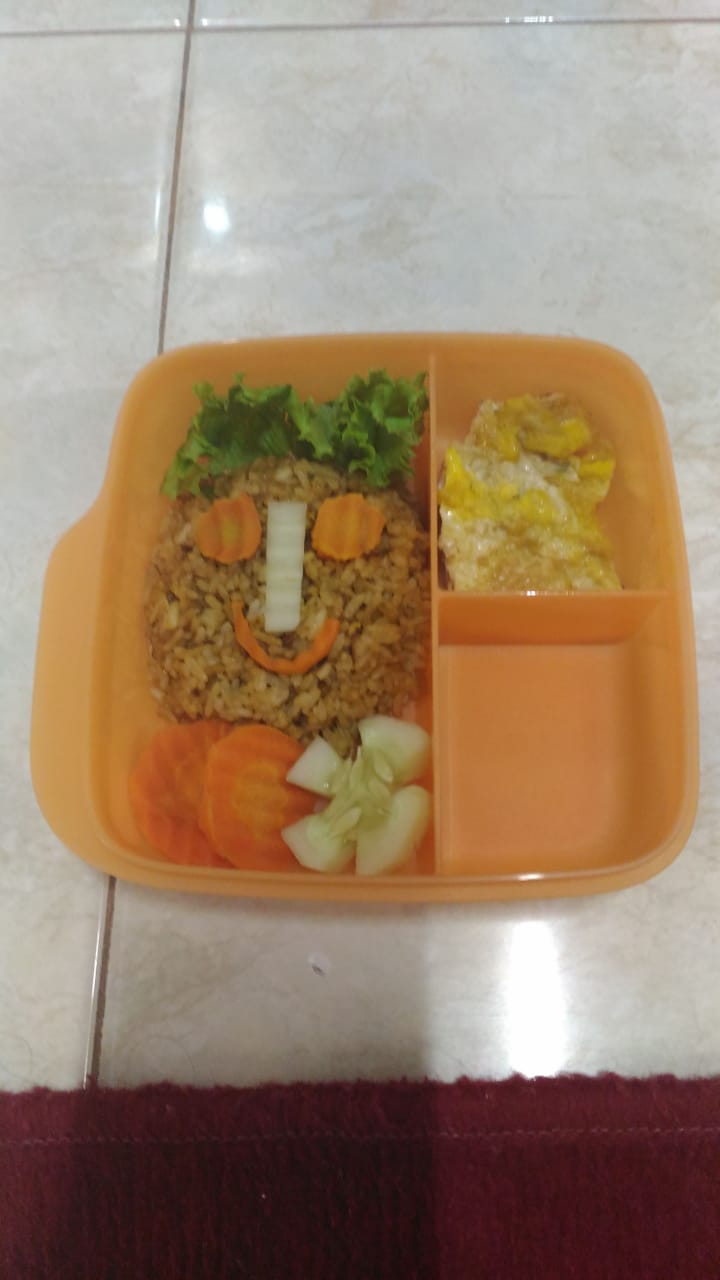Pagi itu si kakak berangkat sekolahnya dengan riang. Karena bekalnya sesuai dengan keinginan. Nasi goreng semangat. Nama itu layak untuk bekal sarapannya. Bekal yang dibuat dengan cinta dan kasih sayang bunda untuk anaknya. Meskipun sederhana si kakak bangga bekal buatan bundanya. Alhamdulillahnya pulang dari sekolah wadah bekal sarapan bersih tak tersisa. Terimakasih sekolah islam terpadu Permata Surabaya. Atas program menarik buat para bunda. Menyiapkan bekal sarapan sehat. Semoga bundamu telaten membuat bekal sehat ya nak. Aamiin.