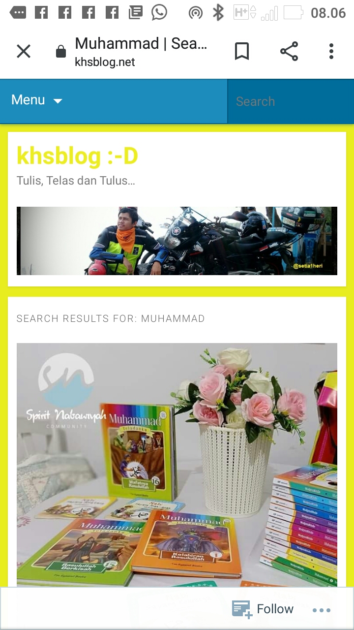 Dua blog kami kelola berdua. Sebelumnya semua dikelola suami. Kini kami saling mengingatkan dan menguatkan untuk meluaskan kebaikan dengan menulis. Blog otomotif menjadi fokus tulisan suami (setia1heri.com). Second blog (khsblog.net) berisi tulisan beragam tema, blog “gado-gado” menjadi tanggungjawab saya. Alhamdulillah, berkahnya anak sulung kami juga mulai tertular virus menulis sejak kelas tiga SD.